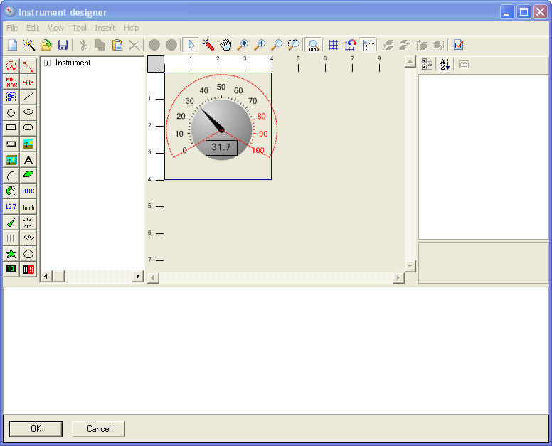 department became an independent subsidiary. Of primary interest here is Instrumentation ModelKit, a unique product intended for creation of life-like dashboards, device emulators and graphical user interfaces. The Instrumentation ModelKit features a designer that runs inside the .NET IDE (Integrated Development Environment) to create UI elements. The designer view looks like this: